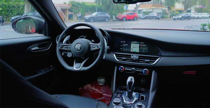 L'intérieur se distingue par son système audio Harman/Kardon, en plus du tableau de bord et ses sièges revêtus de cuir noir fin avec surpiqûres rouges. Les vitres teintées, le badge Competizione sur les côtés et les appui-têtes avant complètent la dotation.