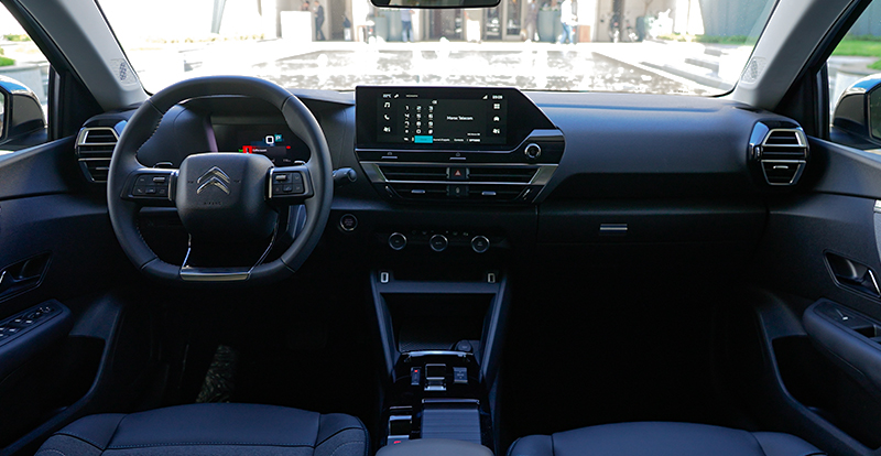 A bord, la C4 X reprend le même mobilier de la C4. Au centre de la planche de bord épurée trône un écran tactile de 10 pouces compatible sans fil avec Android Auto et Apple CarPlay et tournant autour du même système d’infodivertissement de la C4, ainsi qu’un combiné d’instrumentation de 5,5 pouces qui reste inférieur à ce que propose à la concurrence… Surtout que l’affichage tête haute de 7 pouces de la C4 n’est pas disponible sur la C4 X !