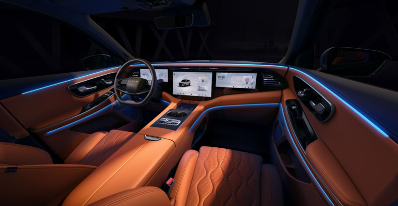 À bord, le VX offre une expérience digne des plus hauts standards du Premium, à l'image de la planche de bord très épurée qui abrite trois écrans : l'instrumentation numérique de 12.3 pouces, l'écran tactile de 15.6 pouces, ainsi que l'écran passager de 12.3 pouces, sans oublier l'affichage tête haute grand angle.