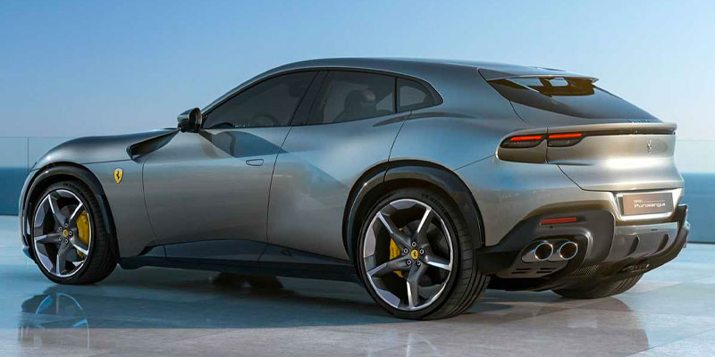 A l’arrière du Purosangue, on retrouve les traditionnelles 4 optiques propres à la marque. Plus modernes, elles s’allient avec le double becquet (un sur le toit, l'autre sur le coffre), les 4 sorties d’échappement et le large diffuseur pour donner de la prestance au nouveau venu.
