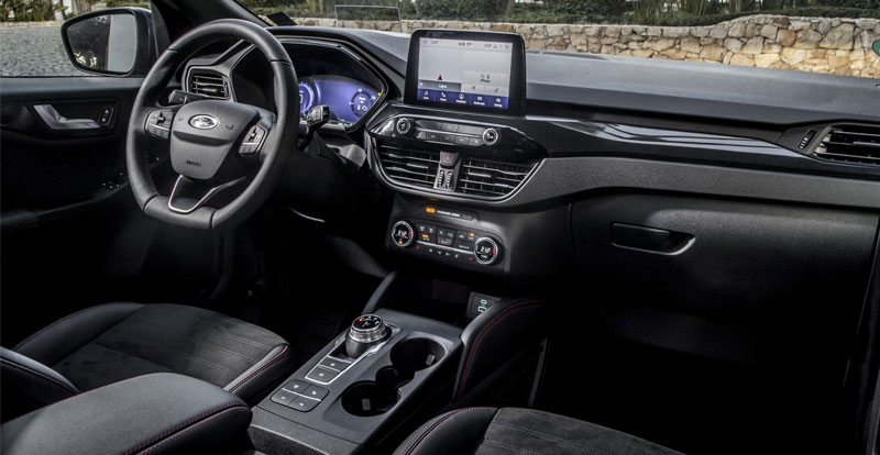 Livré de série dès l’entrée de gamme et placé en surplomb des buses d’aération de la console centrale, l’écran central tactile de 8 pouces, centralise la plupart des fonctionnalités du véhicule. Interface du système d’infotainment SYNC 3, doté d’une commande vocale et compatible Apple CarPlay et Android Auto, il forme, dès le troisième niveau de finition (sur cinq), un tandem aussi esthétique que high-tech avec le Digital Cockpit, pavé d’instrumentation numérique de 12,3 pouces.