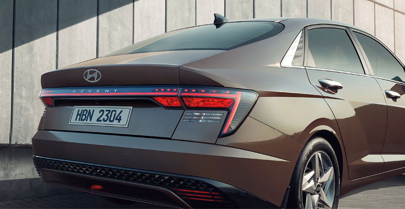 Lors de sa transformation, la HYUNDAI Accent est devenue (presque) méconnaissable ! Cette 6ème itération de la compacte adopte un look futuriste inspiré de la nouvelle Sonata. A l’avant du véhicule aux lignes acérées on retrouve un bandeau lumineux qui relie les feux de jour. Cet ensemble homogène confère à l'Accent un regard distingué. A cela s’ajoutent la calandre paramétrique en chrome noir et les boucliers musclés.