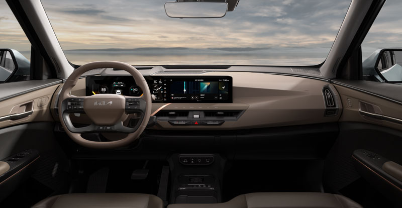 A bord, le nouveau venu s’inspire là aussi de l’EV9, surtout au niveau de la planche de bord abritant la double dalle numérique.