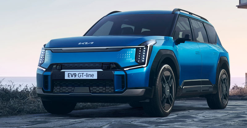 KIA a également dévoilé la finition GT-line de l'EV9, laquelle bénéficie d'un design exclusif qui la démarque clairement de la version standard. Ainsi, les boucliers avant et arrière, les jantes, et les barres de toit ont été retravaillés, arborant toute une palette de nuances de noir. La déclinaison GT-line se distingue notamment par sa calandre « Digital Pattern Lighting Grill » qui ajoute une touche supplémentaire de dynamisme et de sophistication à son design déjà impressionnant.