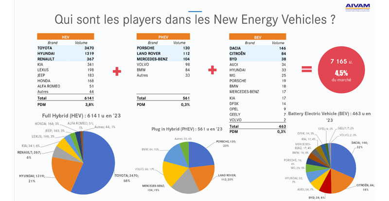 On note également que la dynamique des ventes de véhicules à motorisations alternatives (hybride, hybride rechargeable et 100% électrique) se confirme avec une part de 4.5% (+ 1 point). Toutefois, ce résultat reste largement faible comparé par exemple à l’Europe (47%).