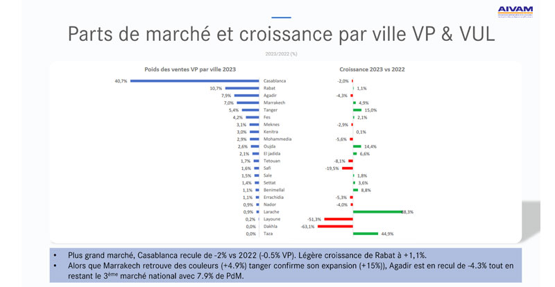 Et concernant les villes, l’année 2023 a été plus clémente comparée à 2022 où seulement Settat et Errachidia avaient enregistré des progressions positives.