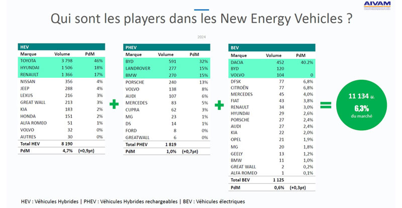Enfin, AUDI (3% de parts de marché) gagne une place et occupe désormais la 9ème position, tout comme FIAT (2.9% de parts de marché) qui réintègre ce Top 10 (après l’avoir quitté en 2023) au détriment de TOYOTA !