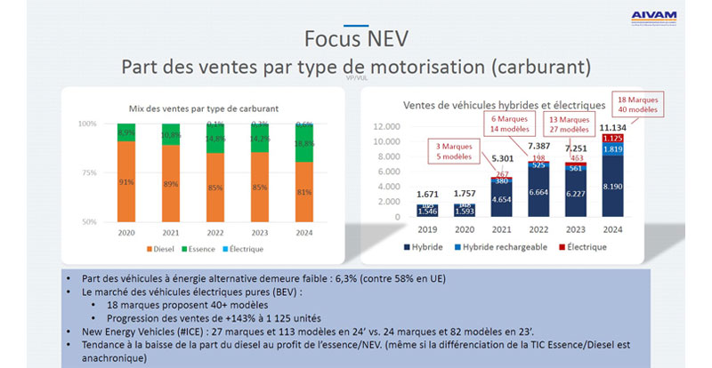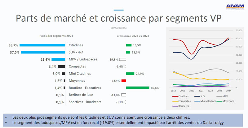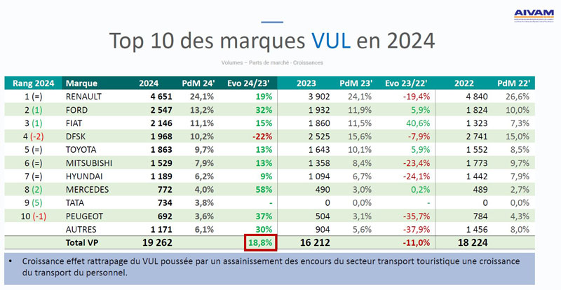 La tendance remarquée est que, avec 19.262 véhicules écoulés contre 16.212 en 2023 et 18.224 en 2022, ce segment s'est bien rétabli, poussé en cela par le transport touristique et le transport du personnel. Aussi, avec une croissance de +18.8%, le VUL superforme comparé au VP qui ne croît que de +8.2%.