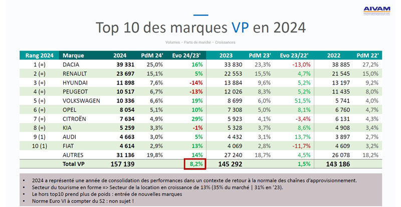 Les autres facteurs favorables sont la légère « baisse » des prix du carburant, l’arrivée de 6 nouvelles marques sur le marché en 2024, la belle année touristique qui a boosté le secteur de la location courte durée représentant 1/3 du marché, ainsi que l’entrée en vigueur le 1er juillet de la norme Euro 6 qui a permis aux constructeurs de proposer plus de modèles sur notre marché. Soulignons ici que cette norme n’a finalement pas plombé le marché puisque la hausse des prix des véhicules a été limitée.