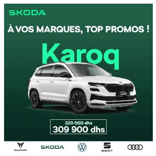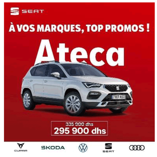 Du 1er mai au 15 juin 2024, la Centrale automobile Chérifienne et ses concessionnaires à travers tout le Maroc organisent la deuxième édition du “Salon Village Auto” où AUDI, CUPRA, SEAT, ŠKODA et VOLKSWAGEN affichent des promotions inédites !