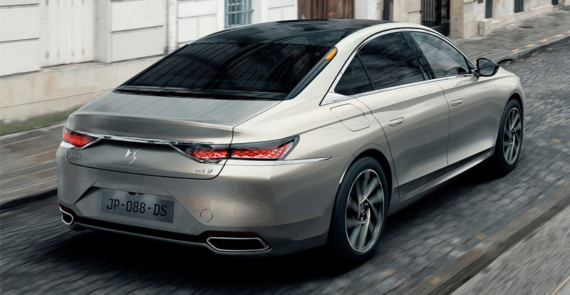 Comme les SUV qui lui servent de frangins, cette DS 9 regorge d’exubérances stylistiques : l’œil se perd entre le pavillon biton noir, les poignées de porte affleurantes, les feux arrière effilés sertis d’écailles, ou encore la baguette chromée qui les souligne…