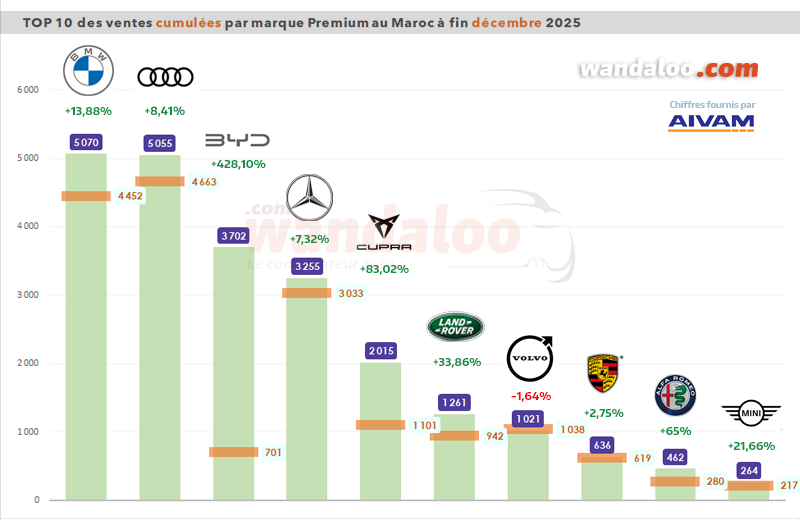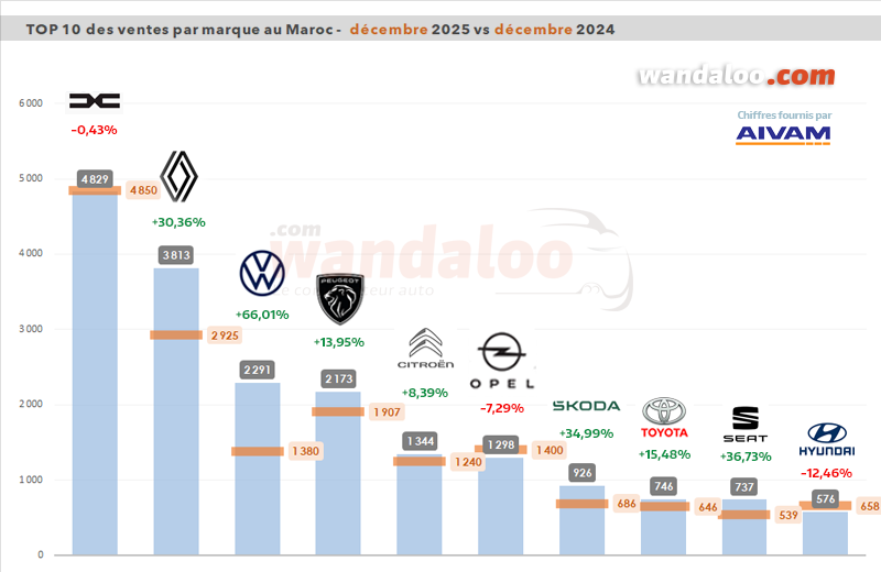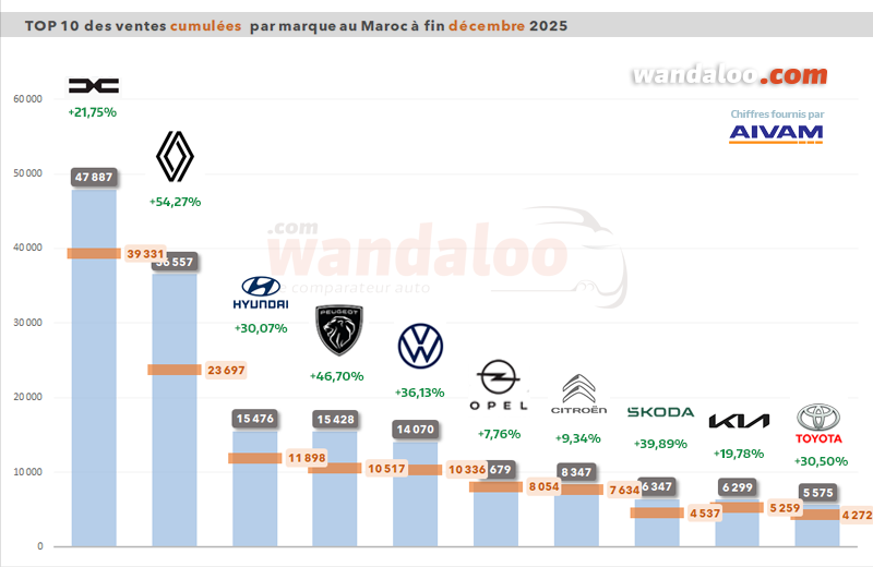 Grâce à la douzième performance supérieure à +20% de l’année, le marché automobile marocain du neuf a pulvérisé son record enregistré en 2018 avec 177.359 unités vendues ! À fin décembre 2025, le marché automobile global totalise 235.372 unités.