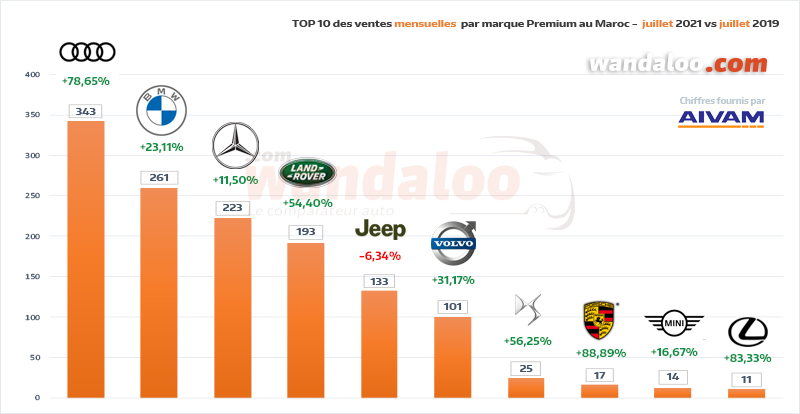 Au terme du mois de juillet 2021, le marché automobile des voitures neuves au Maroc a affiché une progression de 14,50% comparativement à la même période en 2019. C'est ce qui ressort des chiffres communiqués par l’Association des importateurs de véhicules automobiles au Maroc (AIVAM).