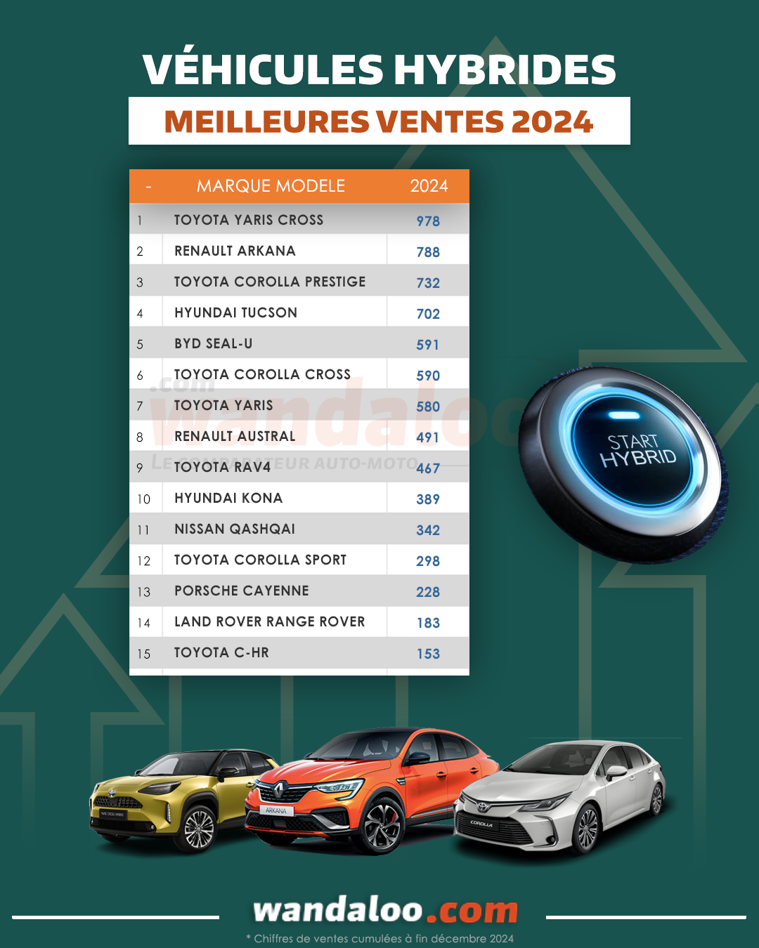 Au sein du segment des véhicules électrifiés, la concentration du l'hybride rechargeable est du côté des marques Premium ( à leur tête le BYD Seal-U et son prix imbattable ), alors que le full hybride est plutôt du côté des marques généralistes avec une domination historique de TOYOTA !