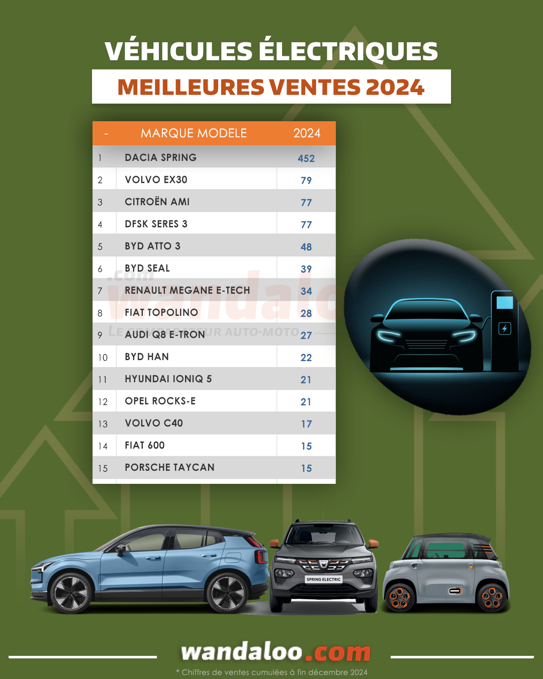 En 2024, les véhicules 100% électriques ont trouvé 1.125 preneurs dans un marché où 18 marques proposent plus de 40 modèles. A souligner que la marque scandinave VOLVO a réussi à placer deux modèles dans ce classement !