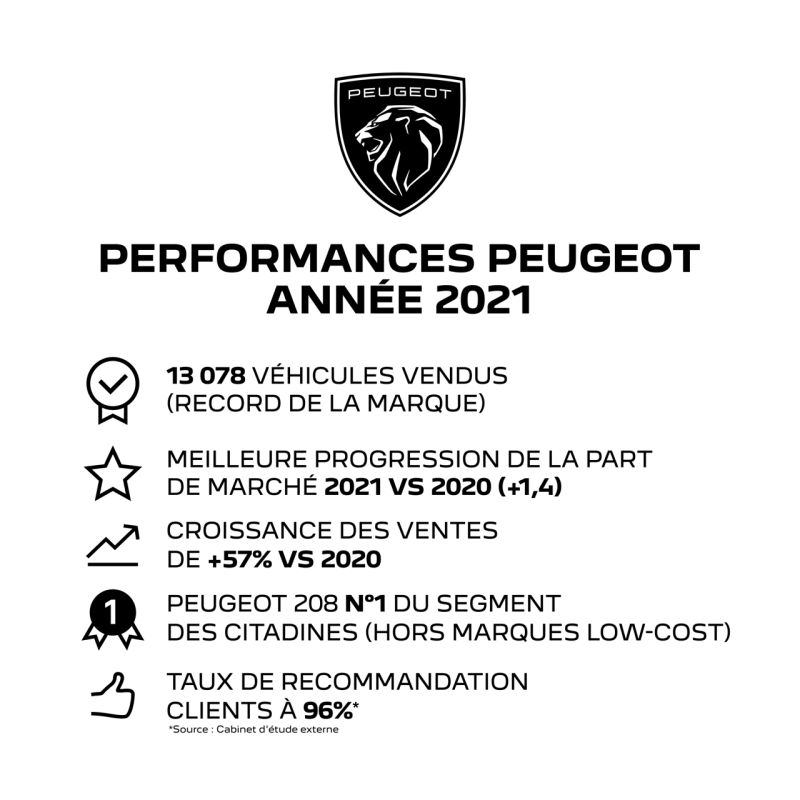 Ces résultats remarquables augurent une année 2022 encore plus prometteuse, qui connaîtra notamment le lancement de la Nouvelle génération de la PEUGEOT 308, ainsi qu’une multitude de services à l’attention des clients de la marque au lion.
