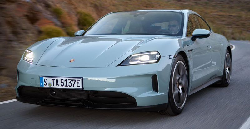 PORSCHE vient de dévoiler la version restylée de sa Taycan. Si le design évolue légèrement, le premier modèle 100 % électrique de la marque améliore par contre ses performances.