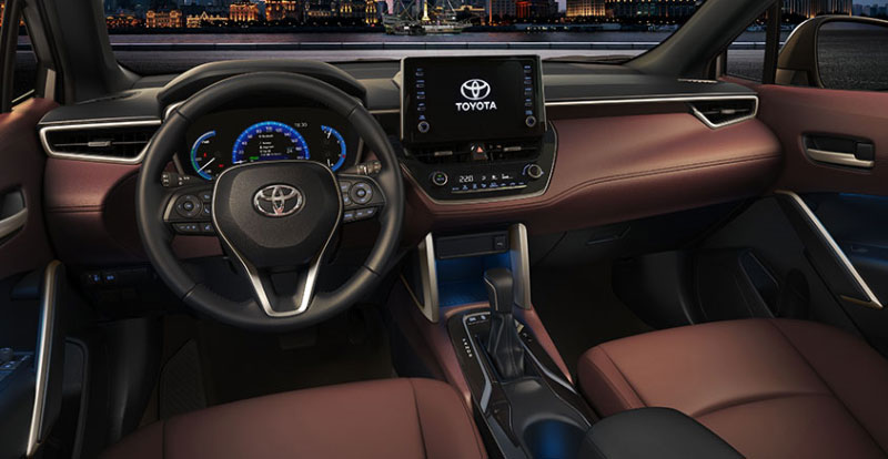 En fait, ce Corolla Cross est à la croisée des chemins («crossroads» en anglais) entre l’univers du RAV4 et celui de la Corolla. Comme ces deux-là, il est bâti sur la plateforme TNGA-C, soit dit en passant. Et il reprend logiquement la présentation intérieure de l’emblématique compacte, à ceci près que la console centrale du crossover gagne, au niveau de sa partie basse, deux poignées gris anodisé.