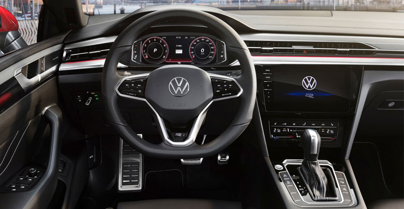 A bord, l'Arteon Phase 2 reprend, à l’instar du modèle suppléé, la présentation intérieure de la Passat. Mais, tandis que ce dernier n’a pas revu sa planche de bord et sa console centrale à l’occasion de son restylage, l’Arteon « facelift » s’offre des aérateurs spécifiques, de même que de nouveaux inserts, ou encore des portières partiellement redessinées. Signalons, par ailleurs, l’apparition de commandes de climatisation tactiles et d’un nouveau volant ayant droit à de telles commandes également.