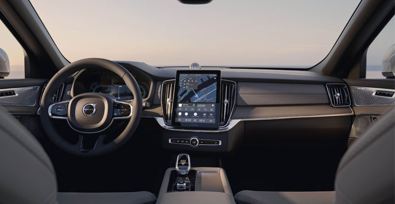 À bord, VOLVO a fait le choix de retoucher légèrement son SUV de luxe. L’essentiel des changements se trouve au niveau de l’écran tactile qui mesure désormais 11,2 pouces (contre 9 pouces précédemment), devient flottant et a droit à un affichage encore plus net. Ce dernier fait appel à la dernière génération du système d’infodivertissement avec Google intégré, le même utilisé par les EX30 et EX90 100% électriques.