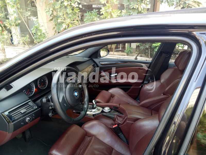 • BMW M5 E60 Phase 2 Boite Automatique 507 chevaux • Date de mise en circulation : 26/06/2008 • Achetée neuve au Maroc (à BMW – SMEIA) • Non Débridée • Etat : Intérieur et Extérieur Excellents (très loin de faire leur âge) • Prix fixe : 170 000 DH • Aucune réparation à prévoir. • Pneus Neufs • Vignette payée et vidange tout juste faite. • Motorisation : V10, 5 litres Essence de 507 chevaux (seul moteur issue de la Formula 1) • Boites de Vitesses Automatique à 7 Rapports avec mode séquentiel • Châssis et suspensions "M"